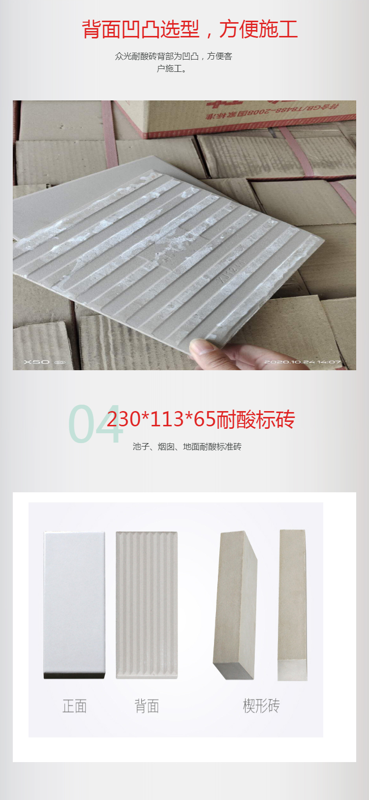 耐酸磚的國家標(biāo)準(zhǔn)是GB/T8488-2008.主要的參數(shù)有:耐酸度,吸水率,彎曲強度,耐急冷急熱性。中冠生產(chǎn)的耐酸磚完全符合耐酸磚的國標(biāo),并且可以提供檢測報告。其實選擇耐酸磚的標(biāo)準(zhǔn)主要有兩個:由于耐酸磚的主要成分是二氧化硅,那么我們就可以從成分上觀察耐酸磚是否含有二氧化硅元素。其次可以從外表來看,耐酸磚是否存在裂紋或殘缺,或者是否有斑點、缺釉、干釉等現(xiàn)象出現(xiàn),因為這些問題都是施工過程中的不達標(biāo)導(dǎo)致的。后呢我們可以從耐酸磚的規(guī)格上判斷,耐酸磚的規(guī)格都是嚴(yán)格按照一定的尺寸來進行加工的,這樣便于鋪設(shè)時候的整齊美觀,如果出現(xiàn)規(guī)格尺寸大小不一致的情況也是耐酸磚不達標(biāo)的表現(xiàn)之一。