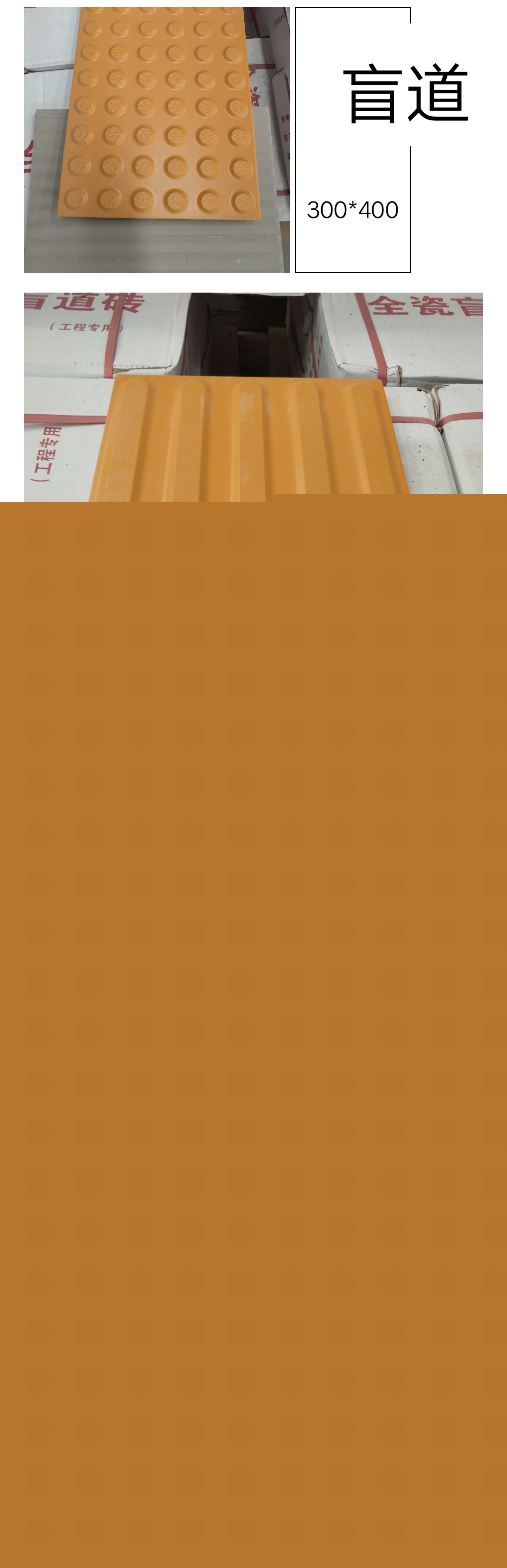 盲道磚顏色:灰色、深灰、黃色(另有通體微晶石出售,盲道磚旁邊鋪的白色安全線)